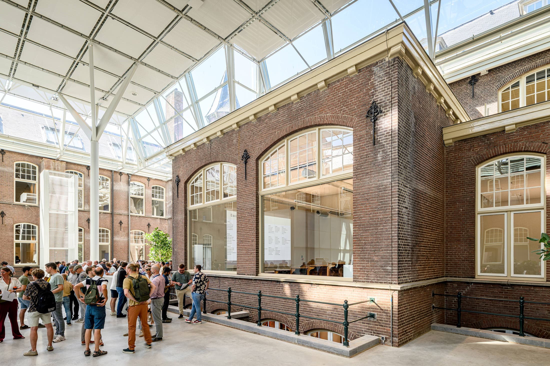 Decor voor de bijeenkomst was het nieuwe kantoor van Haskoning in Delft: een rijksmonument uit 1912 dat circulair is vernieuwd tot een Paris Proof werkplek. Historische structuren zijn hier behouden, terwijl het interieur grotendeels bestaat uit hergebruikte en demontabele elementen. Het gebouw fungeerde niet alleen als inspirerende omgeving, maar ook als bewijs dat circulariteit en kwaliteit elkaar niet hoeven te bijten.
